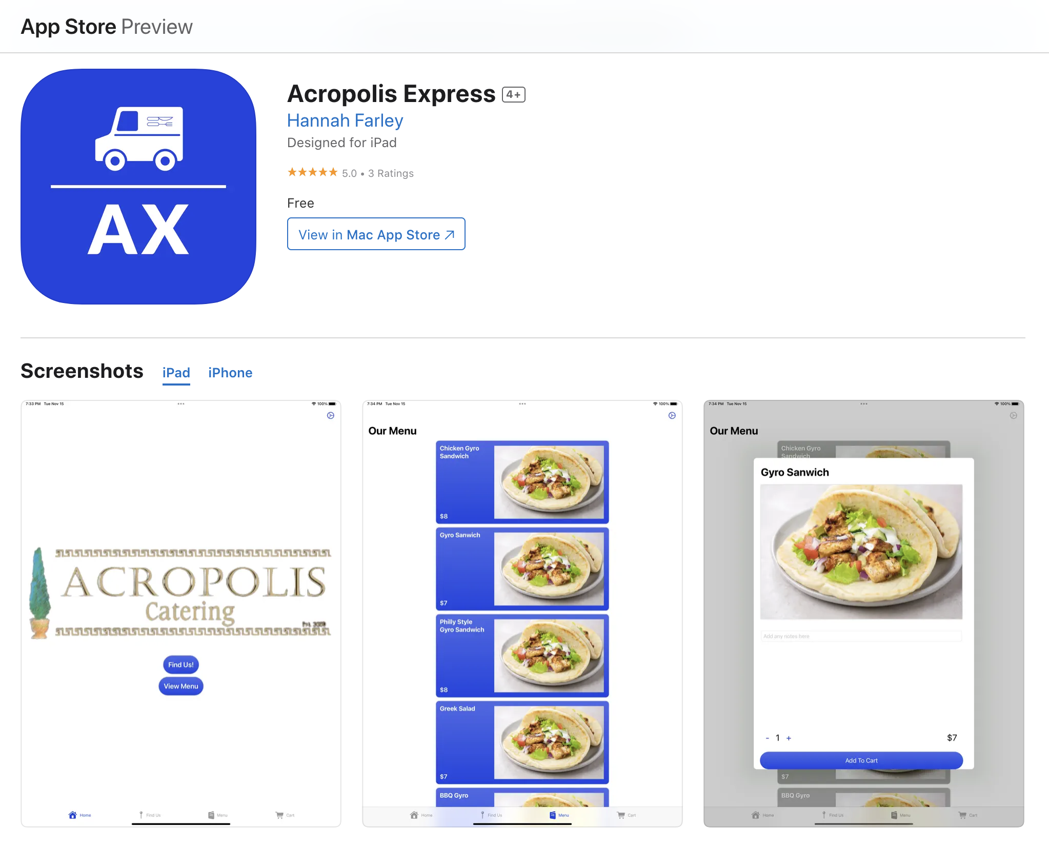 work with three other students to develop an iOS application for a local food truck called Acropolis